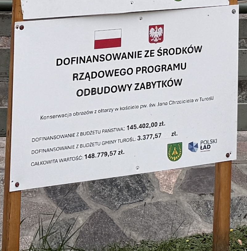W dniu 7 października 2025 roku w obecności przedstawicieli Wojewódzkiego Urzędu Ochrony Zabytków w Białymstoku Delegatura w Łomży, Urzędu Gminy W Turośli oraz Wykonawcy  i Proboszcza Parafii pw. Św. Jana Chrzciciela w Turośli odebrano prace przy konserwacji obrazów  z ołtarza głównego ("Matka Boża Częstochowska i Ukrzyżowanie) oraz z ołtarzy bocznych (Chrzest Chrystusa i Św. Antoni).
