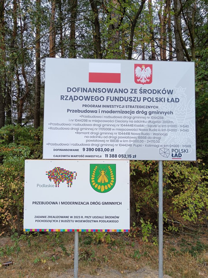 - „Przebudowa i rozbudowa drogi gminnej nr 104424B Pupki-Kolimagi w km 0+00-1+568”