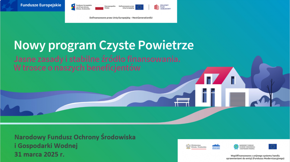 Uprzejmie informuję, iż w poniedziałek 31 marca 2025 r. został uruchomiony nabór w zmienionej wersji programu „Czyste Powietrze”.